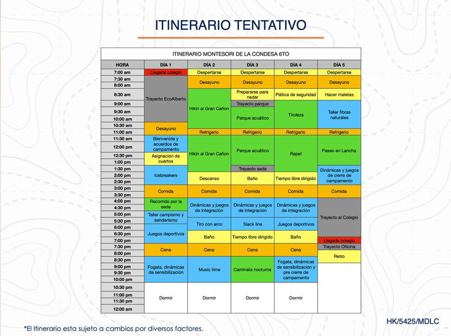 La cita de salida será el lunes 25 de mayo a las 6:00am en el colegio.